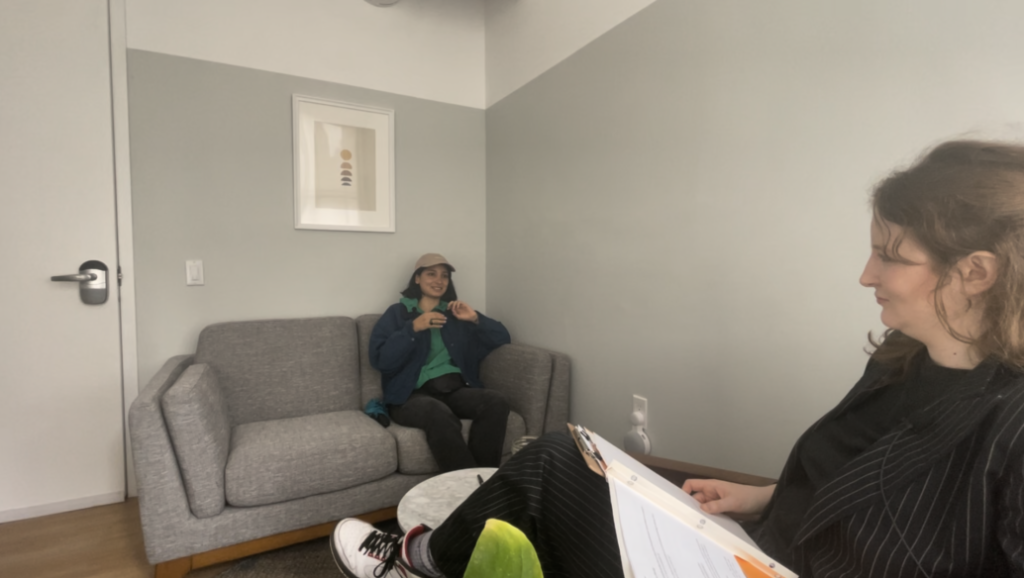 She conducted filmed interviews in a borrowed therapist’s office. A friend was present during each interview. The first interview happened in a hallway because they couldn’t access the office building.